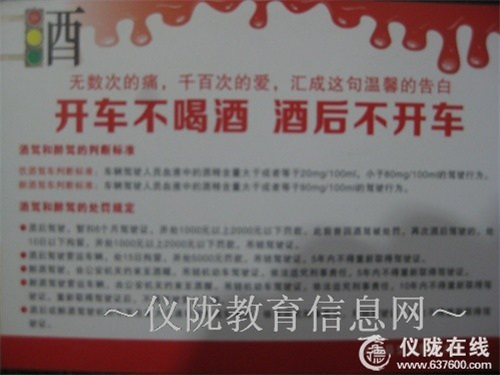 此次宣传教育活动意义深刻,通过此次小手拉大手,让孩子带动家庭,家庭影响社会,逐步形成“开车不喝酒,酒后不开车”的一致共识。,严格遵守交通法律法规,为平安仪陇贡献出自己的一份力量。