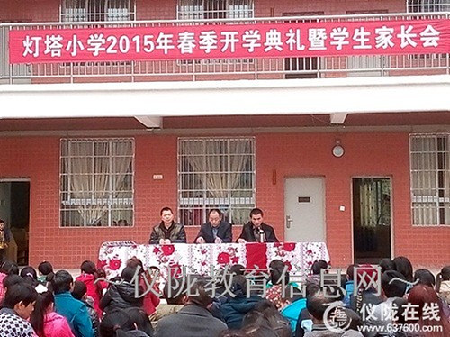 3月12日14时,灯塔小学上空红旗飘扬,国歌嘹亮。全体师生和学生家长齐聚一堂,胜利举行了2015年春季开学典礼及学生家长会。
