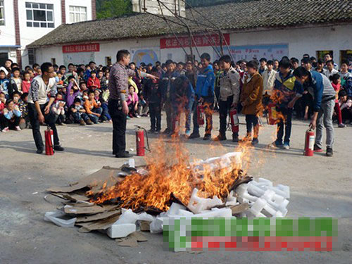 本次安全演练包括两个方面的内容:一是消防逃生演练,二是灭火器的使用演练。演练开始前,各班班主任对班上学生在演练过程中的注意事项进行讲解。随着警报的拉响各班班主任立即迅速、有序的组织本班学生逃离到距离最近的操场。接着将全校学生聚集在操场,对如何使用灭火器进行培训,并通过实际操作让学生能更加准确的使用灭火器。
