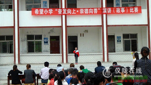 2015年4月10日下午2:30,丁字桥镇希望小学在操场举行了以“奋发向上,崇德向善”为主题的学生故事比赛。在现场,全校师生整齐划一,聆听了由三至六年级各班推荐的优秀代表的精彩讲叙。