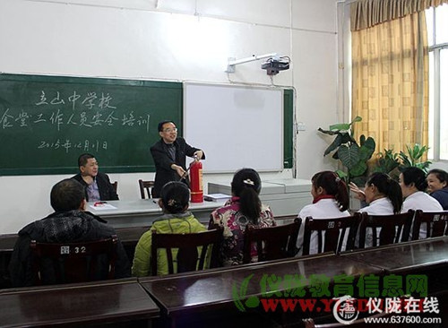 在培训会上,德育处何主任首先结合学校食堂食品卫生安全管理工作的自身问题做重要讲话,他强调了食品卫生安全工作的重要性,指出食品卫生安全工作是学校的一项基础性和保障性工作,关系到学校师生的身心健康,关系到学校正常的教育教学秩序等。接着何主任还就如何正确使用灭火器进行了现场展示。