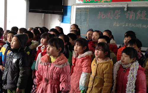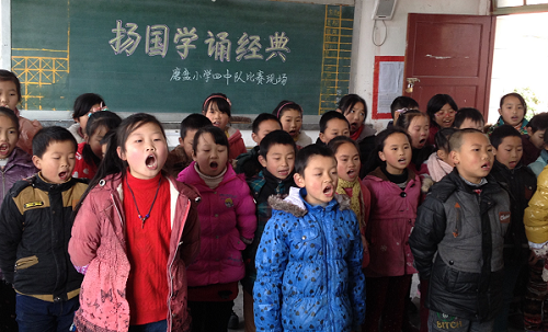 (磨盘小学 胡科林)为进一步丰富校园文化生活,营造浓厚的书香校园氛围,借以传承国学文化经典,弘扬民族文化精髓,激发学生的读书和诵读热情, 12月25日上午,磨盘小学校举办了以班为单位的“扬国学.诵经典”经典诵读比赛。