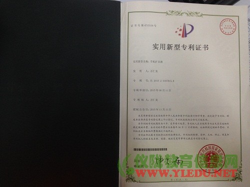 经过两学期的努力,学校专利工作小组取得了丰硕成果。12月27日,我校申报的实用新型专利“手机扩音器”项目,获得国家知识产权局颁发的实用新型专利证书。专利发明人万仁龙,专利号为ZL201520397815.8,2015年6月11日提交专利申请资料,11月11日授权公布。