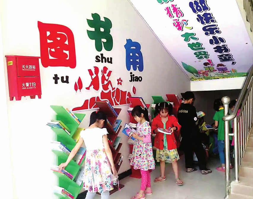 6月14日,记者在仪陇县永乐镇磨盘小学的一处楼道看到,“图书角”几个彩色大字下面,竖着几个书架。学生们或席地而坐,或依墙而立,正在安静地看书。据介绍,为丰富学生课余生活,拓展学生课外知识,该校利用楼道公共活动区域,建起了开放式图书角。