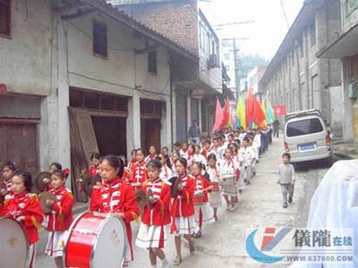 早上七点,鼓声号声欢呼声,声声入耳。踏街仪式在“欢庆六一,喜迎奥运”、“好好学习,报效祖国”、“柳垭小学六一班,朱德中队好少年”等彼此起伏的口号声中隆重而有序地进行。