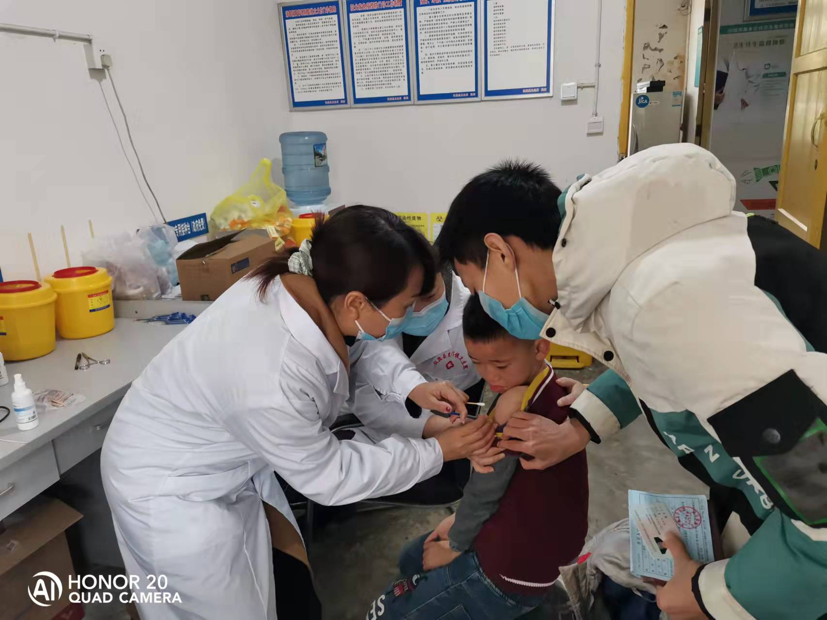 学生们在家长的陪同下来到度门卫生院疫苗接种现场,在工作者的指引下,按照疫苗接种流程,有序排队,填写知情同意书和健康状况登记表,了解疫苗接种相关知识后完成接种。学生接种后在家长及教师的陪伴下留院观察等候,确认无异常后返回学校。