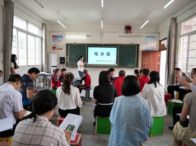 何校长一行在仪陇特校校长和副校长的陪同下先参观了校园,随即走进启智班教室,观摩了一堂由教务主任陈云云上的生活语文课《电冰箱》。讲台上陈老师始终面带微笑,用亲切的语言和形象的肢体动作,引导智障学生通过图片与视频观看去认识电冰箱,通过游戏去加深生字词的认读。课堂上陈老师根据学生的不同智障程度,采用分层教学方式,多加赞赏与鼓励,让学生在轻松愉快的课堂氛围中认识了电冰箱,知道了电冰箱在生活中的用处。