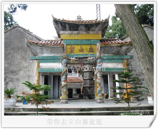 立山寨雄峙高拔,东睹平昌望崇,南望营山太蓬,西眺仪陇金城,北窥巴中友风,四周险要,只西南一条小道直通寨顶。整个山寨,古柏、黄荆、马桑夹杂生长,枝叶茂密,遮天蔽日,远远望去,活像一颗特大的绿色绣珠滚落人间,给仪陇的山光水色嵌上了翡翠般的宝珠。