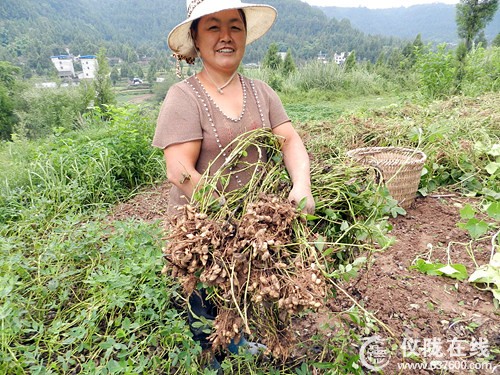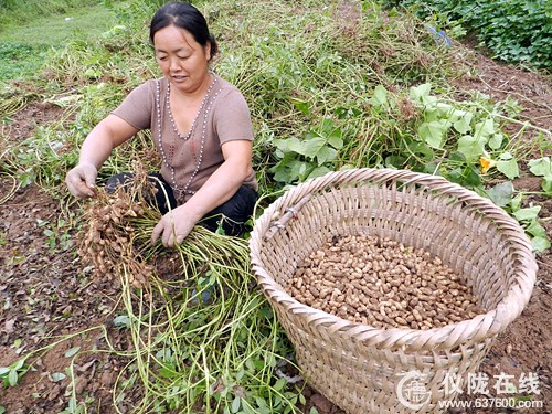 9月1日上午,记者在仪陇县周河镇双龙村采访,看到该村1社村民刘菊香正在喜滋滋地采摘天府花生。
