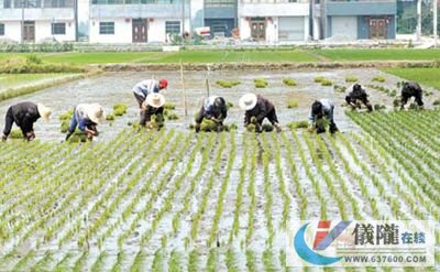 5月12日,仪陇县三蛟镇宝山村的一块水稻示范田里,农民们正在加紧移栽水稻。据悉,今年该县34万亩水稻移栽,目前已接近尾声。