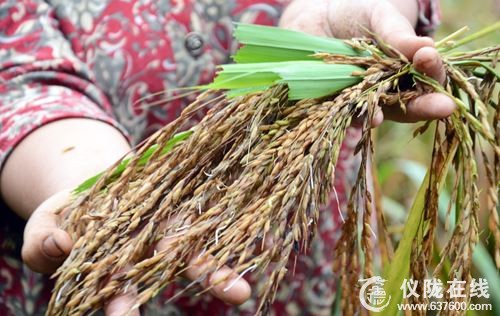 9月16日,记者来到新政镇九道拐村,微风细雨中只见一片片黄灿灿的稻谷依然生长在田地里。该村农民李秀琼把记者带到她家的田地旁,顺水抓起一株稻穗,金黄的稻穗上是一颗颗饱满的水稻,其中一些水稻上却长出了一至二厘米长的白色嫩芽,一些水稻由于连日的阴雨,出现了变黑腐烂现象。今年家里种了3亩多田,以往水稻收获季节多是晴天,没想到今年却遇到雨水密集的雨季,而且是连续多日阴雨,成熟期的水稻无法按时收割,才会出现发芽现象。“这些就是收割回去也只能喂鸡、喂鸭,不能打成米,现在都不想来田边看了,看着心里着急。”