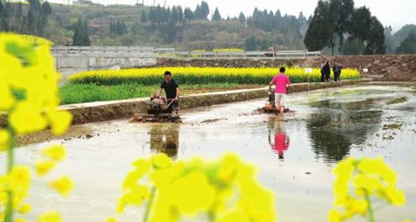 3月4日,仪陇县赛金镇高家坝村,田间地头一派繁忙景象。村民们犁田、锄地,为春播春种做准备。
