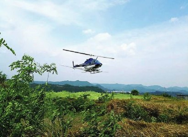 据仪陇县林业局工作人员介绍,时下天气转暖,正是蜀柏毒蛾及食叶类害虫化蛹的时期,用直升机喷洒药物,能有效遏制虫害的大面积发生。据该机飞行员透露,直升机每次可装药400公斤,治虫面积可达1200亩。