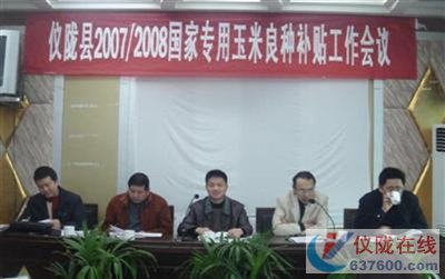 2008年1月4日,仪陇县2007/2008年国家专用玉米良种推广补贴工作会议在朝阳大酒店召开。县农业局、县财政局相关部门负责人及51个乡镇农业服务中心农技人员参加了本次会议。