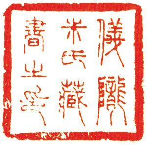 未文,鉴藏印。此印以小篆入印,宽边,有明清印之遗风。印面印文与边框粗细变化较大,对比强烈,具有很强的形式感。印文总体协调一致,结体或长、或 局,参差变化。字体大小变化蕴涵丰富的节奏变化。印文线条纤细均匀,挺拔有力,犹如先秦青铜器皿中错金银文字一样坚挺刚劲。