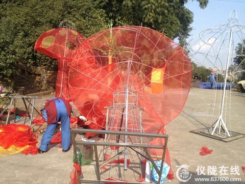 四川省南充市西山风景区将于2月1日至3月5日期间,在西山风景区万卷楼景区举办第三届(2015)“三国之源.魅力南充”迎春灯会。1月9日,记者在景区现场灯会制作看到,数十名工人正在为迎春灯会赶制灯组,灯会组委会负责人表示,预计在1月23日,灯会就要进行试营业。