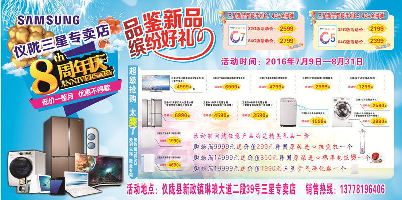 【推广】仪陇三星专卖店8周年店庆 暑期新品送好礼