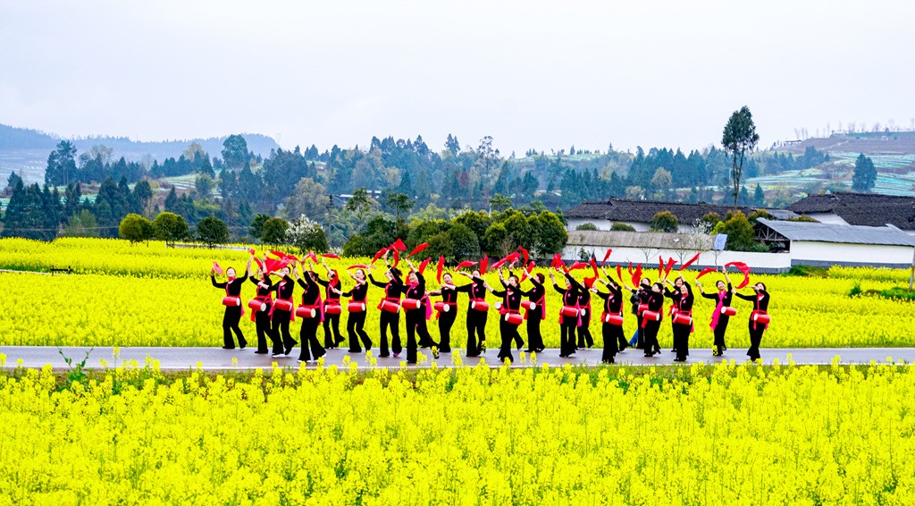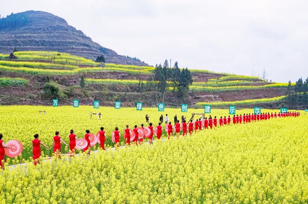 蔓延不绝的菜花、热闹喜庆的场景