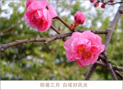 本站讯:阳春三月,带着家人步入户外,娇嗔的阳光照在踏春人的身上,暖暖的让人嗜睡,躺在树林下软绵绵的草堆里,享受着阳光从树缝“漏”下。。。。。。孩子追逐在鲜花初绽的林间。。。。。。爱人吝惜满地掉落的花瓣。。。。。。这一幕就是笔者在我县“白塔山风景管理区”的感受。三月的“白塔山”数不尽的风光等着你的到来。(仪陇在线--泪舞沙情、cfbm)