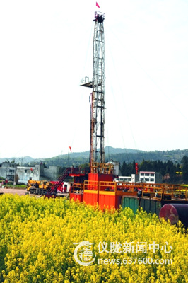 记者在龙岗172井钻探队看见,密密麻麻的野营活动房摆放在油菜花田间,身着红色工作服的钻探工人正忙着搭建井架。